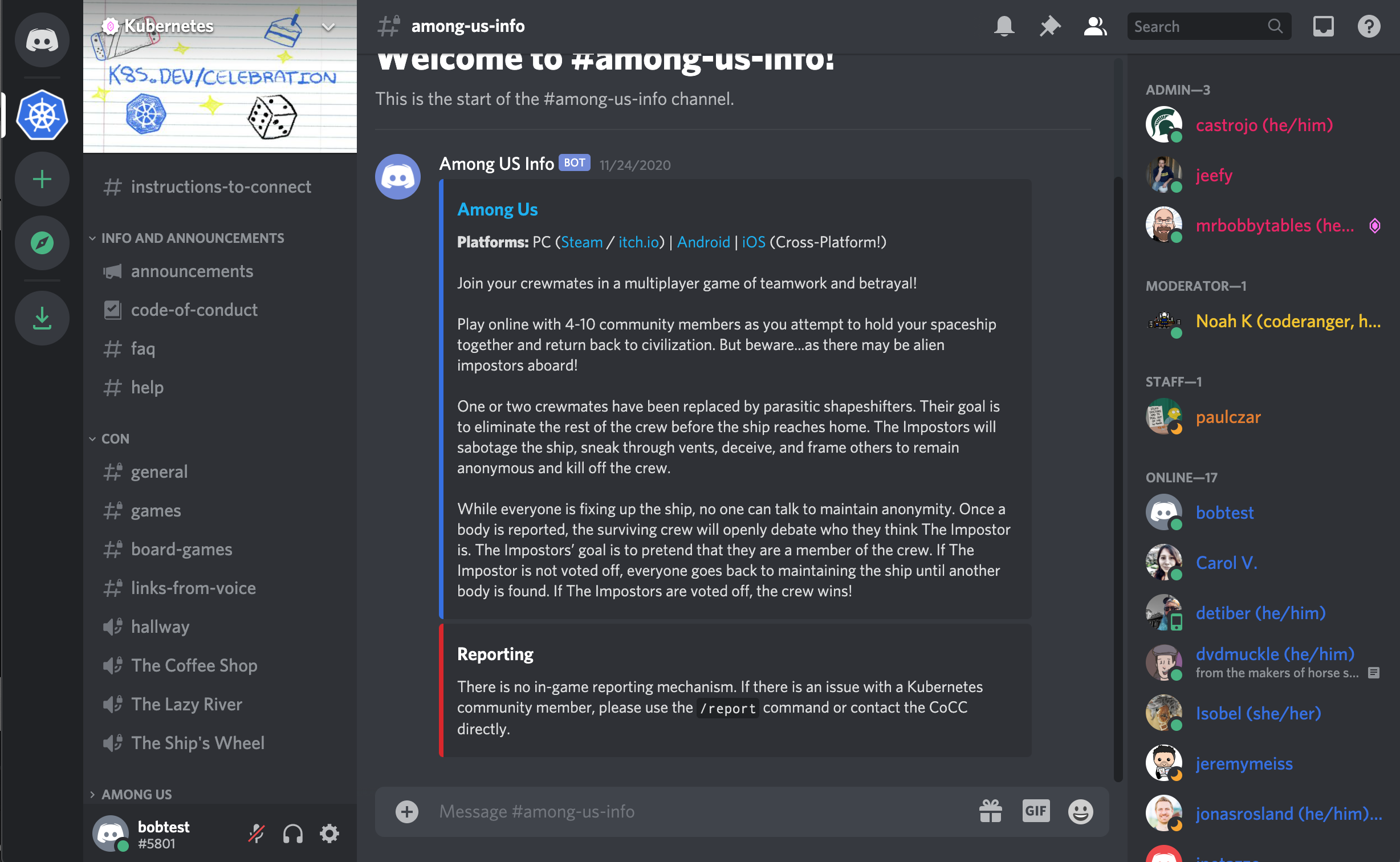 The celebration and all the activities will all take place on the official Kubernetes Discord server with major events being streamed to the Kubernetes YouTube Channel.