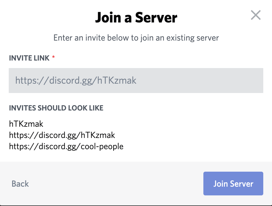 A menu should pop up asking if you’d like to create or join a server. Select Join a server.