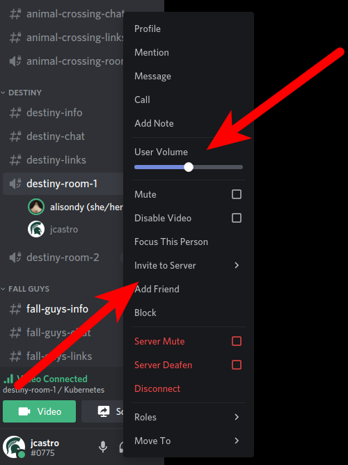 You have full control of your incoming audio! You can right click on a person in the voice room and individually assign a user volume to them. This is handy since not everyone has the same microphone and some people might be too loud, and some might be too soft. If you’re expecting to play with a group for a long time this can help tremendously: